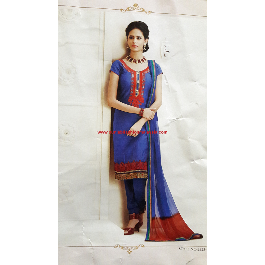 Salwar Kameez semi stitched. Cotton kameez with embroidery in thread .Plain shantoon salwar with shaded chiffon dupatta .Free shipping within Malaysia. Slight color variation is possible.