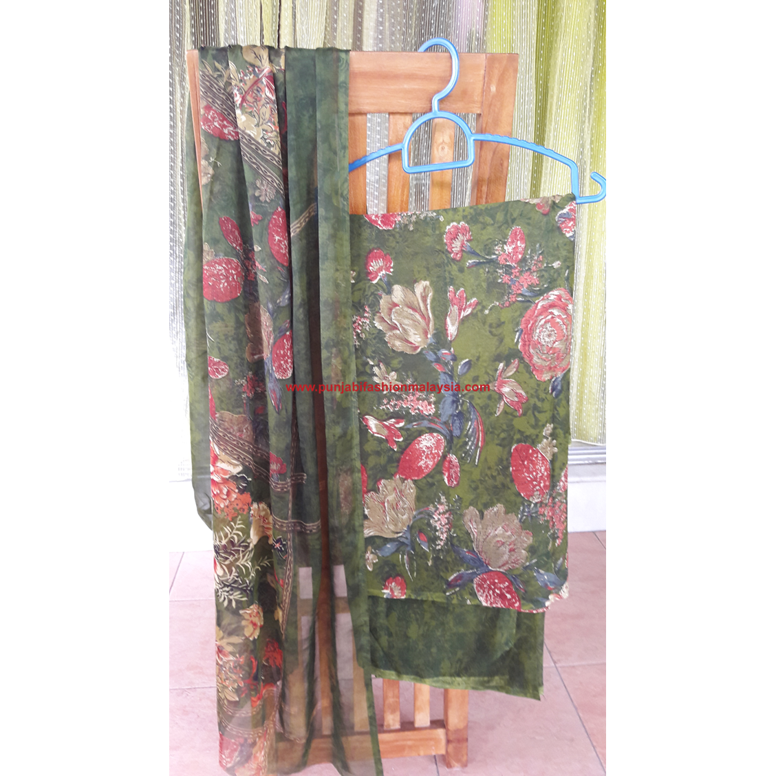 Salwar Kameez Material. Kameez and salwar in printed Georgette with printed chiffon dupatta.